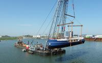 Ten slotte werd de stuurhut teruggeplaatst en kon het schip richting plaats van bestemming.
