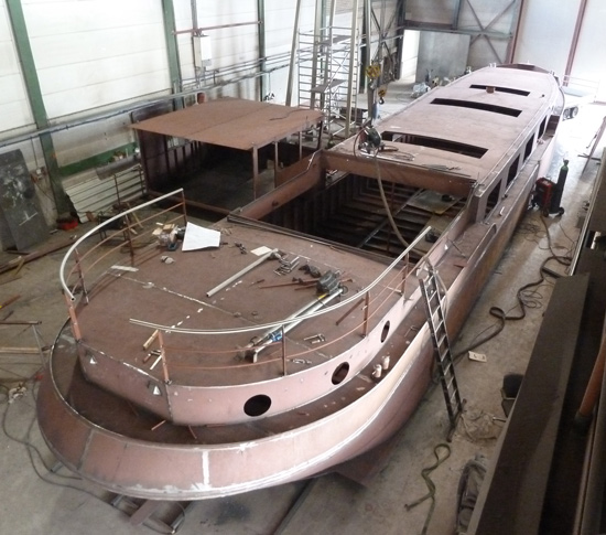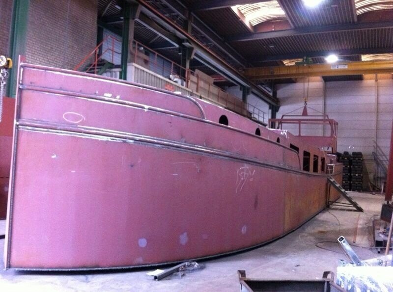 Stalen casco project woonschip Amsterdam bijna gereed.
