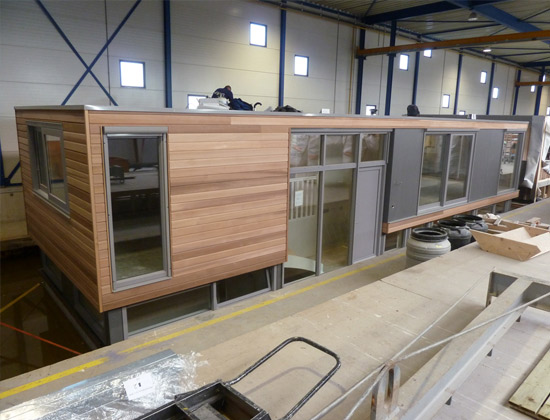 De bouw van deze duurzame woonboot gaat gestaag door bij ABC Arkenbouw Urk !