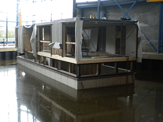 Bouw project woonschip Amsterdam gaat gestaag door.