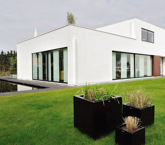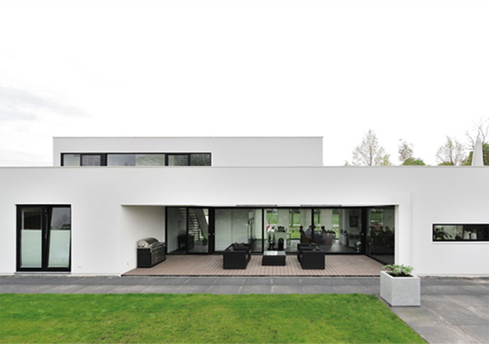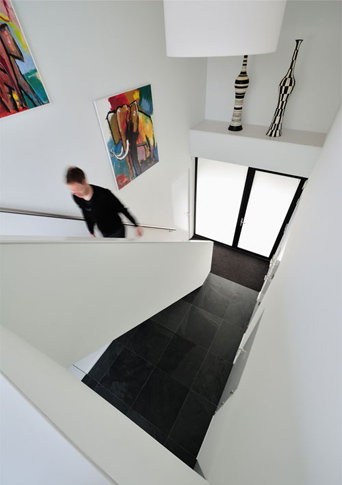 In deze nieuwbouwvilla is een goed werkende combinatie van wonen met kantoor en showroom gemaakt. De woonwerkvilla heeft een uitgesproken, moderne vormgeving met een sterke relatie tussen binnen en buiten, één van de speerpunten van Ronday Architectuur. Door middel van een flinke hoeveelheid glas, de veranda en de vele dakterrassen is het alsof je continu buiten leeft.