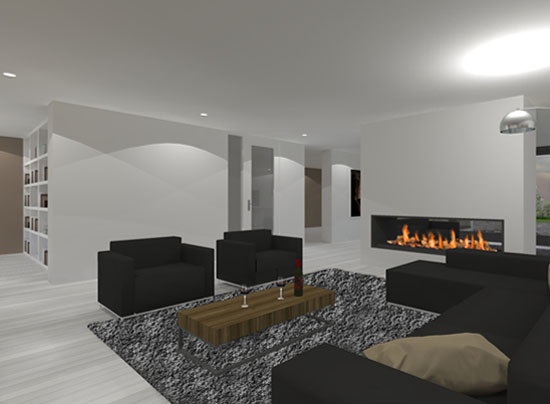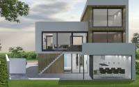 De woning krijgt een moderne uitstraling door de nieuwe vormen en materialisering. Het balkon aan de voorzijde van het huis zorgt voor een betere connectie met het fraaie natuurgebied voor het huis.