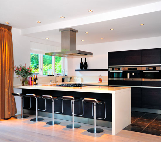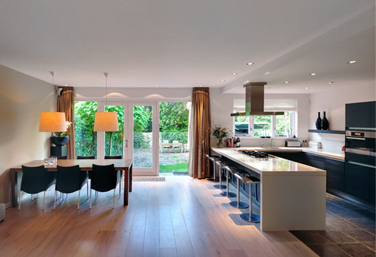 In Bussum is voor een tussenwoning uit de jaren 30 een compleet interieurontwerp gemaakt met een uitbouw.