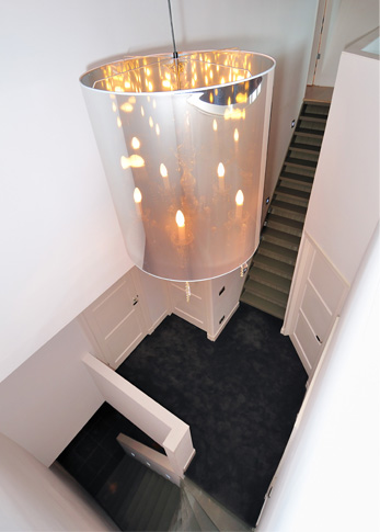 Tussen de 1e en zolder verdieping is een vide gecreëerd, die voor de verticale verbinding in het huis zorgt.